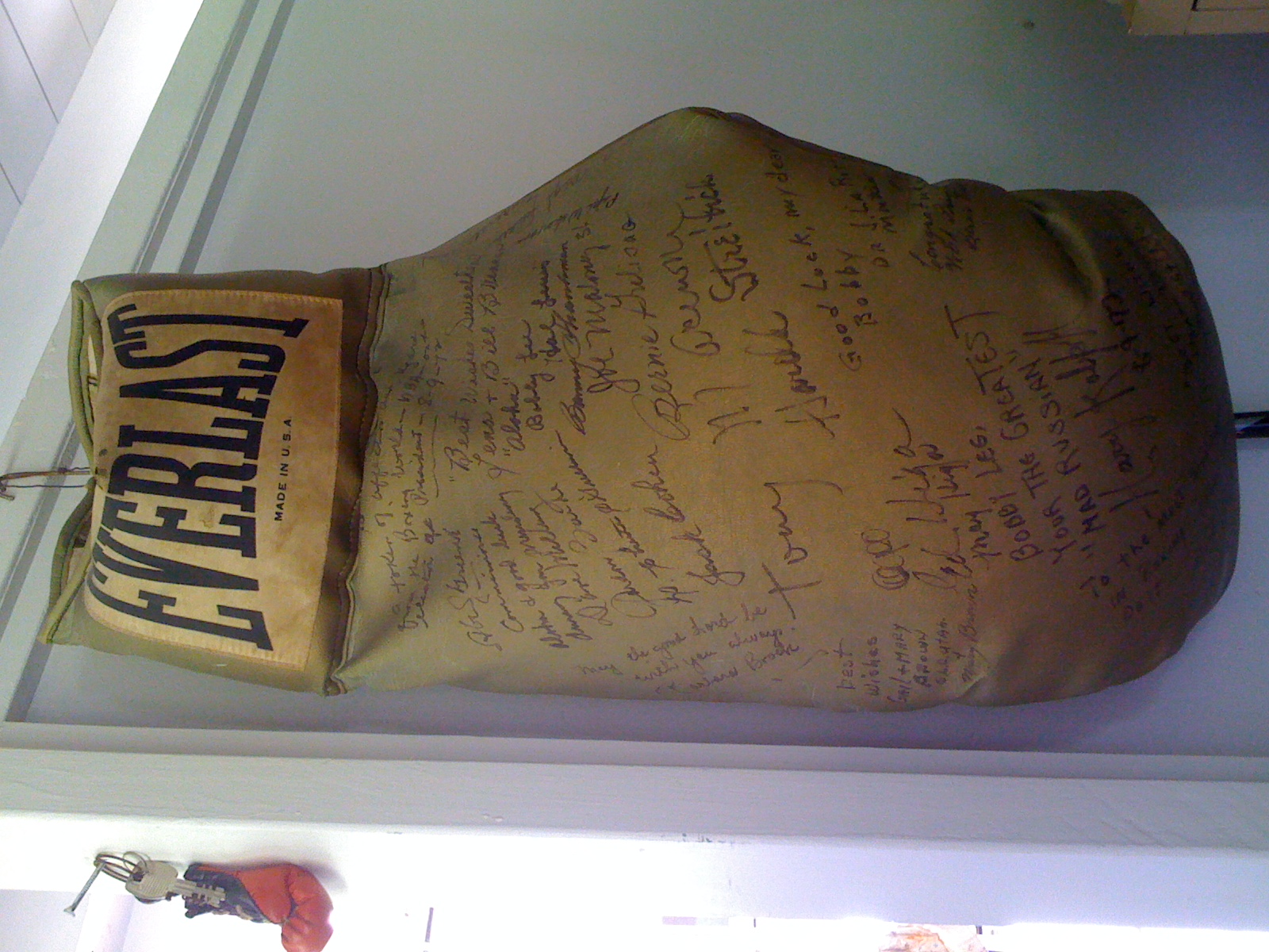 We hang out in a covered patio area that’s decorated with Kel’s grandpa’s boxing memorabilia. There’s always good food, good friends, and good times….