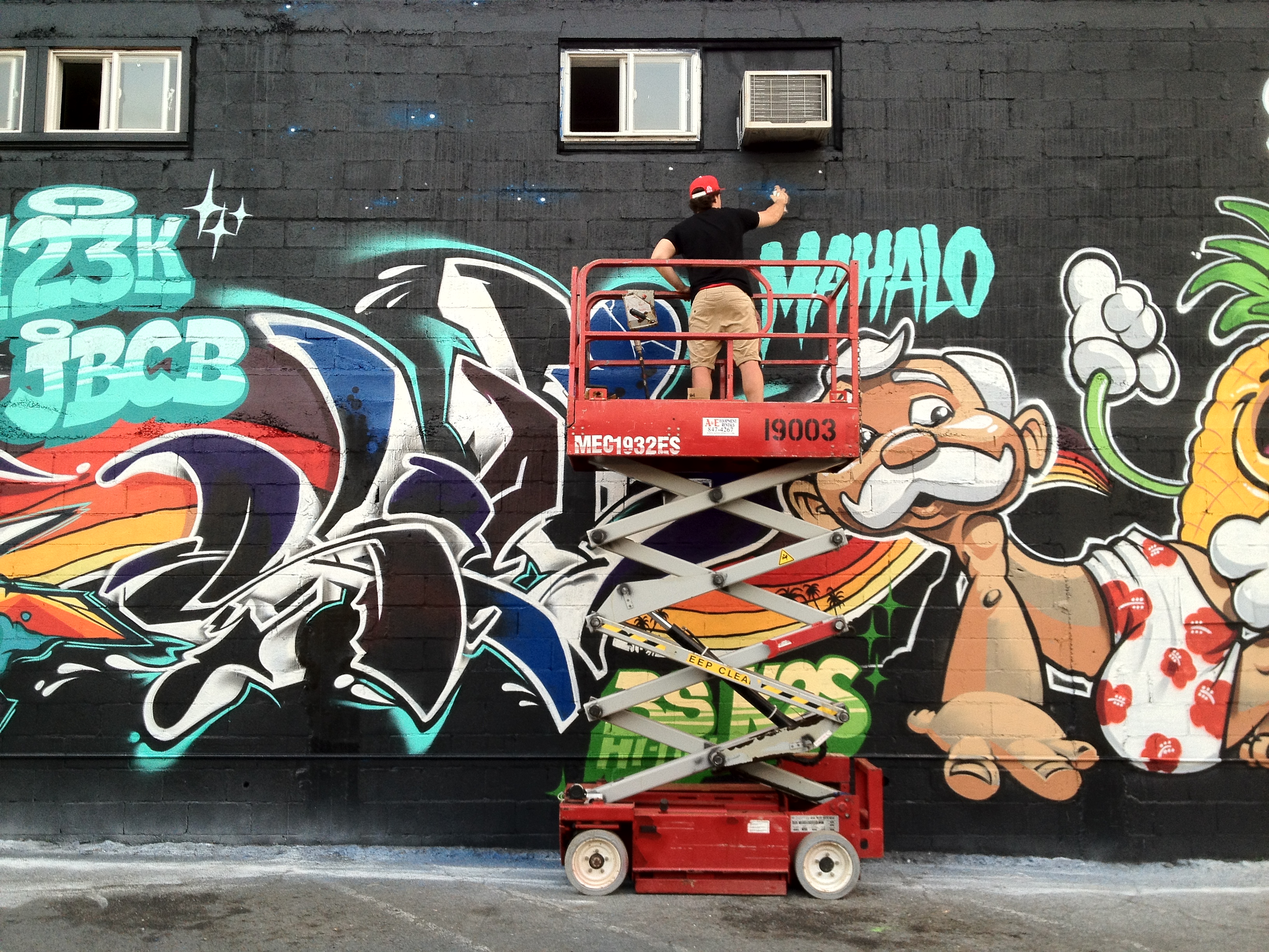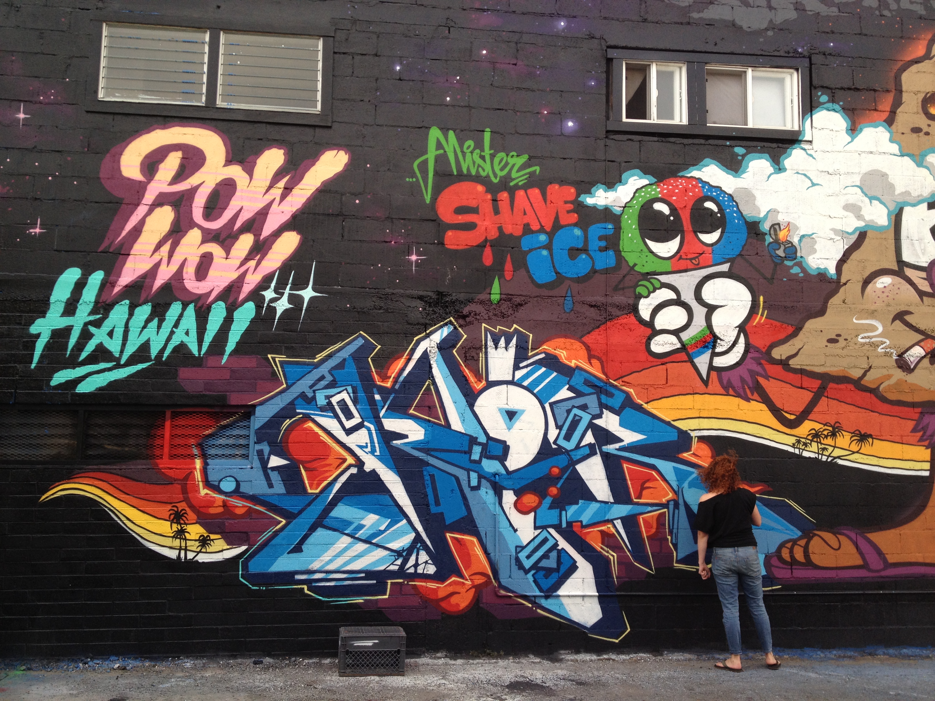 Attended tonight’s opening of POW WOW Hawai’i at Loft in Space x Fresh Café. “POW WOW Hawai’i is a gathering to celebrate culture, music, and art.” Its mission is to engage the broader community in the process and creation of art. Local and international contemporary artists have been painting murals on walls and buildings in the neighborhood of Kaka’ako this past week.