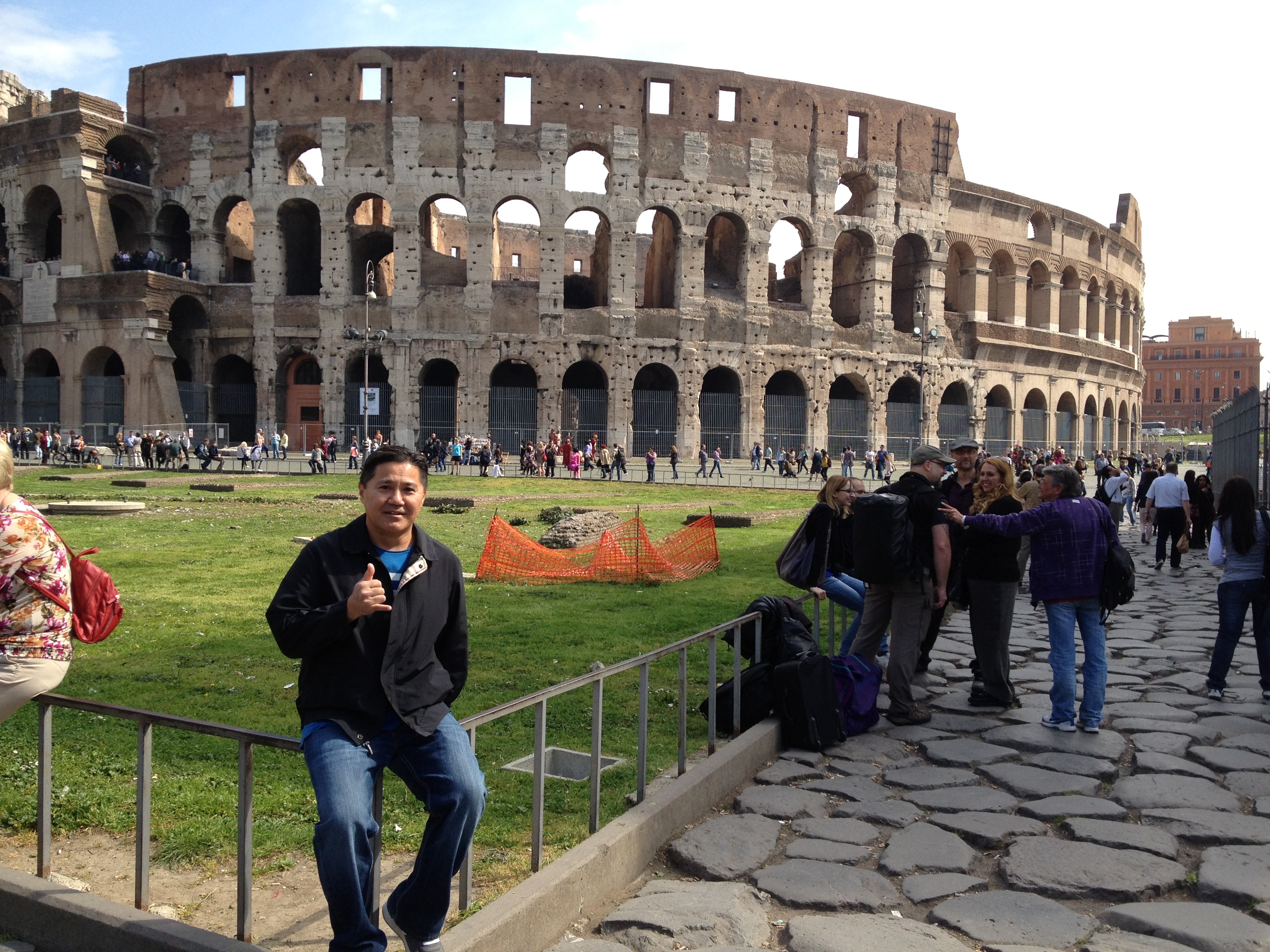 Our first stop was to the Colosseum. There we saw what looked like a bunch of “USC mascots” (dressed-up gladiators who pose for pics with tourists.) As I walked by, one whacked me on the rear with a plastic sword and said, “Come take a picture little man,” to the delight of our tour group….