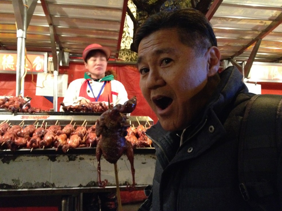 One of my dreams was to eat pigeon. Liz took video, so I went for the head. The meat tasted alright (yes, tastes like chicken,) but I was disappointed that the meat was so tough. It was actually difficult and messy to eat. Still, a lotta fun….