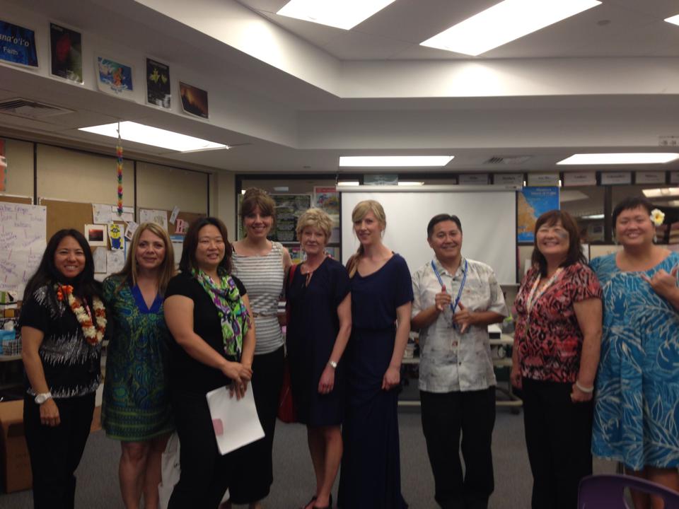 Our friends from Glendal Primary School in Melbourne were finally able to visit us! Here are Roula, Antoinette, Alex, and Christina. We were able to visit their school back in 2010 through JEM, the Joint Environmental Mission. Here’s a blog link about that visit. Sheryl, Gay, Judy, Lehua, and I took turns hosting them throughout the week. I took them site seeing along the Makapu’u coast. We had dinner at the Kona Brewing Company at Koko Marina.
