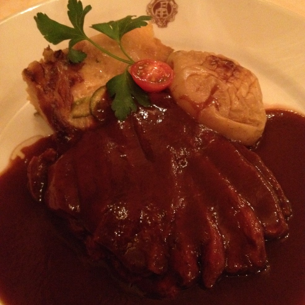 I had the duck for my plat (main.) The sauce was good and the duck was perfectly cooked. The two “starchy” things were good too. One was “cheesey” and the other was “fruity.”
