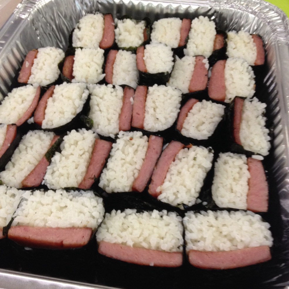 Jan made spam musubis! We had spaghetti and corn-on-the-cob for lunch.
