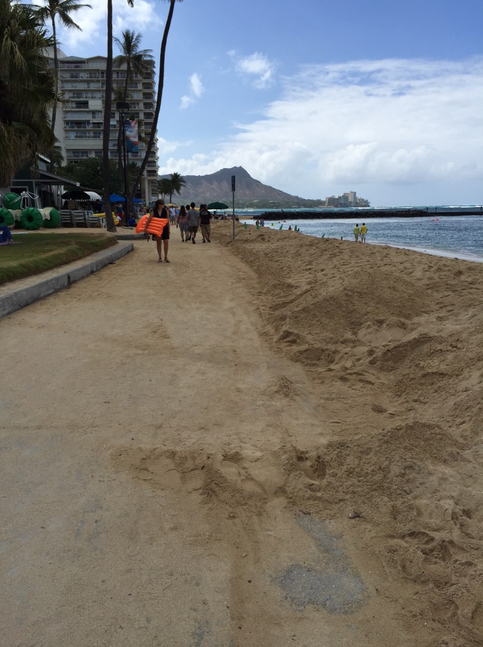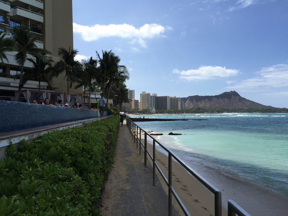 The boardwalk becomes a sidewalk at the 2nd Hilton Hawaiian Village tower.
