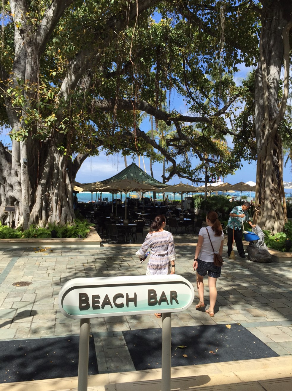 You enter the grounds of the Hilton Hawaiian Village Resort.