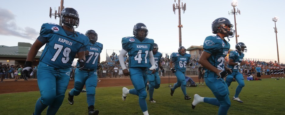 Kapolei High School has cool colors and cool uniforms. Their colors are teal, black, and silver. The teal color really stands out and has taken on an identity for the entire community.